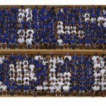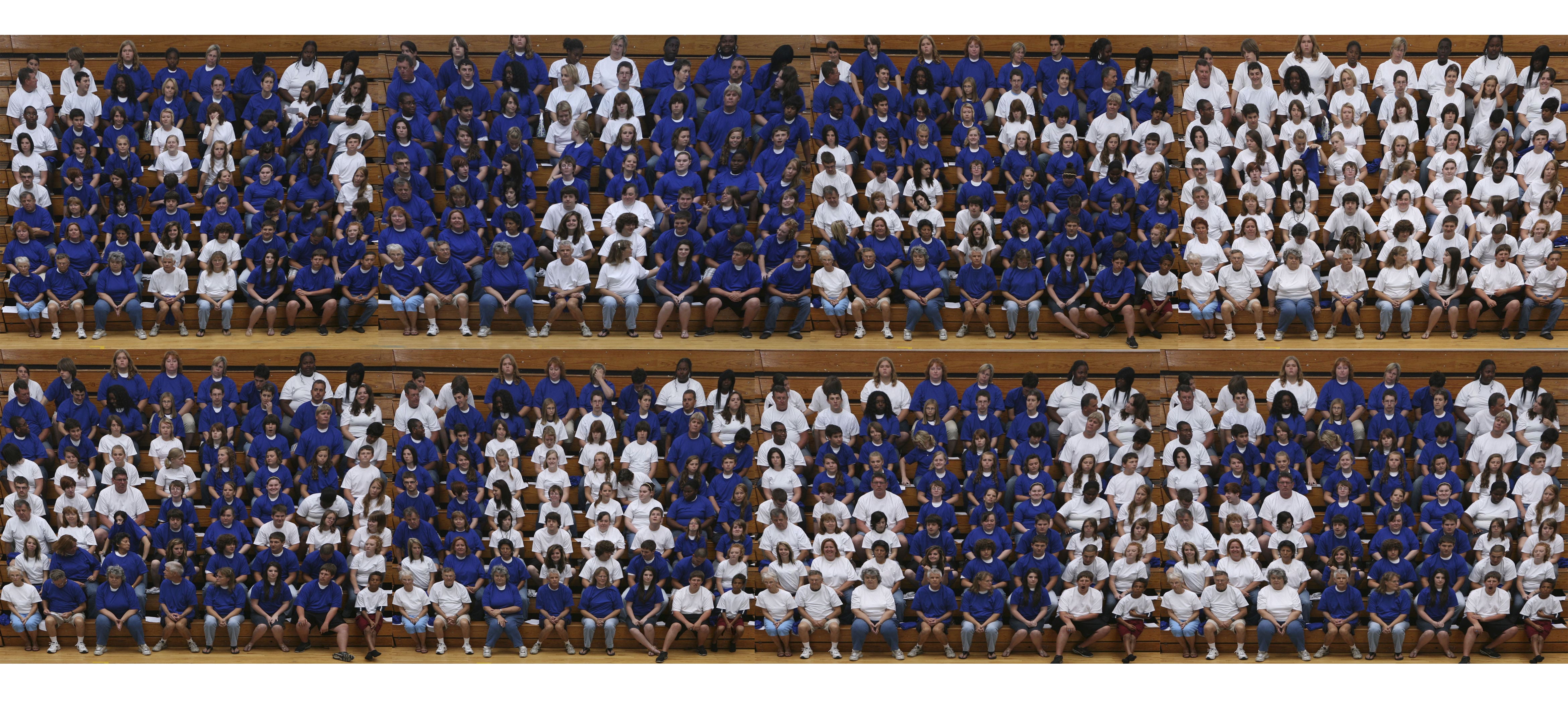 Arena Text & Graphics displays text and graphics throughout a stadium by coordinating what color of shirts fans wear to the game. Using only 64 people, they were able to spell all letters of the alphabet, numbers, and symbols.