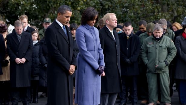 On Monday at 11:00 am, EST, President Obama, the First Lady and White House staff joined many across the country in observing a moment of silence to honor the innocent victims of the senseless tragedy in Tucson, Arizona, including those still fighting for their lives.