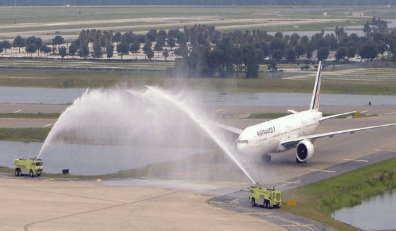 With a near capacity flight, Air France expanded its global outreach when its first 777-300 landed at Orlando International Airport Tuesday.