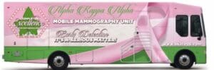 Alpha Kappa Alpha Sorority Inc. has provided healthcare through education and hands-on services to over 100,000 women over the course of four years since launching the 3D mobile unit in 2018. The mammography motorcoach has traveled more than 190,000 miles and visited 31 cities across the country. AKA chapters also partner with local clinics, rural health centers, and hospitals to emphasize the need for women of color to receive regular mammograms because early detection saves lives.