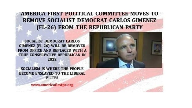 America First Political Committee has formally initiated actions to remove Florida Congressman Carlos Gimenez from the Republican Party. Calling Rep. Gimenez a ‘Persona Non Grata’ in the 26th Congressional District and the State of Florida, the group is blasting him for voting with Nancy Pelosi and “radical leftists” in Washington D.C.