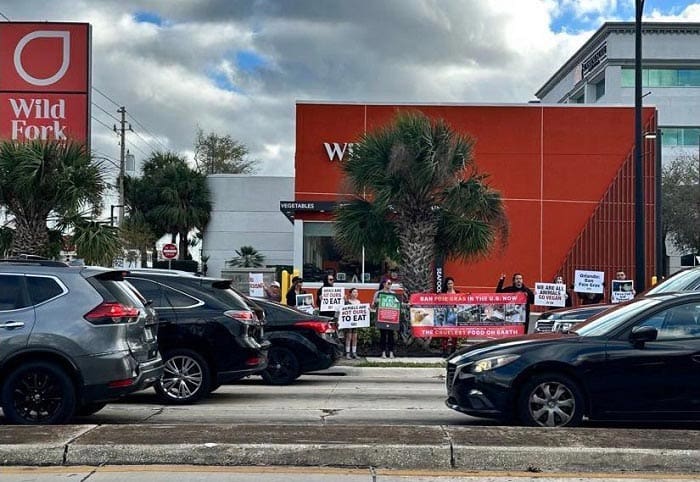 DxE’s protest of Wild Fork constitutes one chapter in their ongoing, focused campaign to eliminate the sale of foie gras in Orlando. Throughout 2022, the animal rights group succeeded in pushing for the removal of foie gras from a total of five establishments including the Wine Room, the Ravenous Pig, Chef’s Table, Kres Chophouse, and La Boucherie Orlando. In light of these victories, DxE has expressed optimism that Wild Fork will become number six on the list.