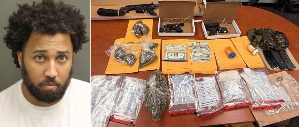 According to OCSO, local law enforcement found two pistols, one rifle, 225 grams of cocaine, 84 grams of fentanyl, 60 grams of methamphetamine, and one pound of cannabis.