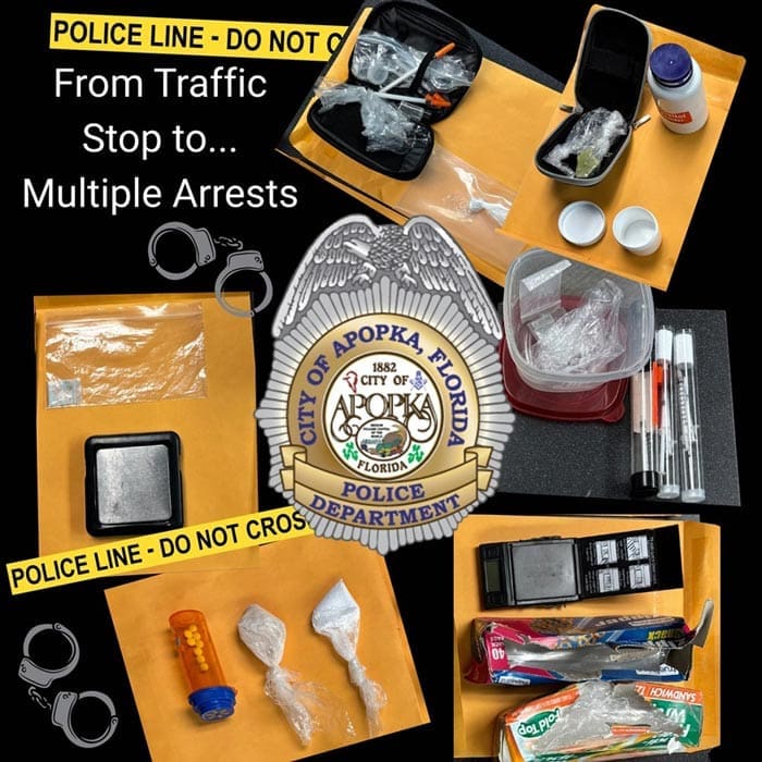 During the stop, Apopka Police officers discovered illegal drugs and evidence of drug trafficking, leading to multiple arrests and the removal of dangerous substances from our streets. APD located nearly 13 grams of fentanyl during this traffic stop.
