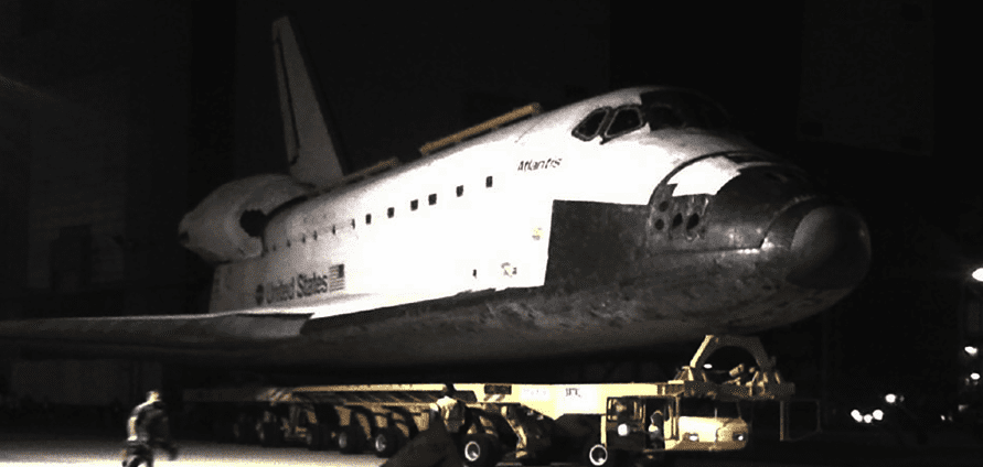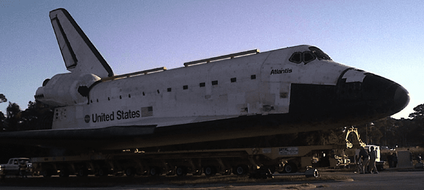 Atlantis will travel the nearly 10 miles from Kennedy Space Center to its new home at Kennedy Space Center Visitor Complex. The Shuttle will undertake the journey at about 2 miles per hour on the 106-foot-long Ortiter Transporter System.