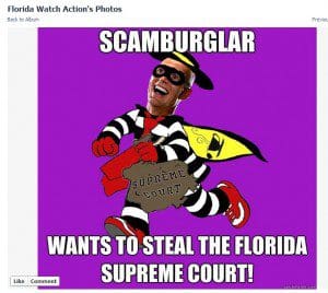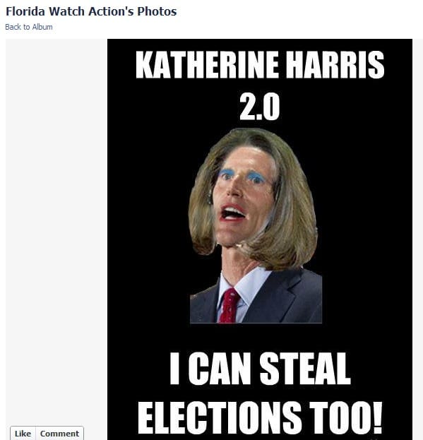 But what’s missing here is the rabid response immediately calling for what seems to ultimately be censorship of a message they didn’t like. This becomes very hypocritical considering the source. Susannah Randolph is Executive Director of a non-profit organization called Florida Watch Action. In short, it is a non-profit dedicated to attacking Governor Rick Scott. They call out a lot of bad policies; however they also produce products like this: