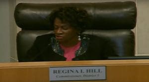 In this election, there has already been one complaint filed against Commissioner Hill alleging “malfeasance and official misconduct”. Also, Hill’s paid campaign staff, employees of Sandra Lewis mentioned above, have been recorded by concerned voters as they attempted to collect absentee ballots in the ongoing pay-for-votes scheme to favor Regina Hill.