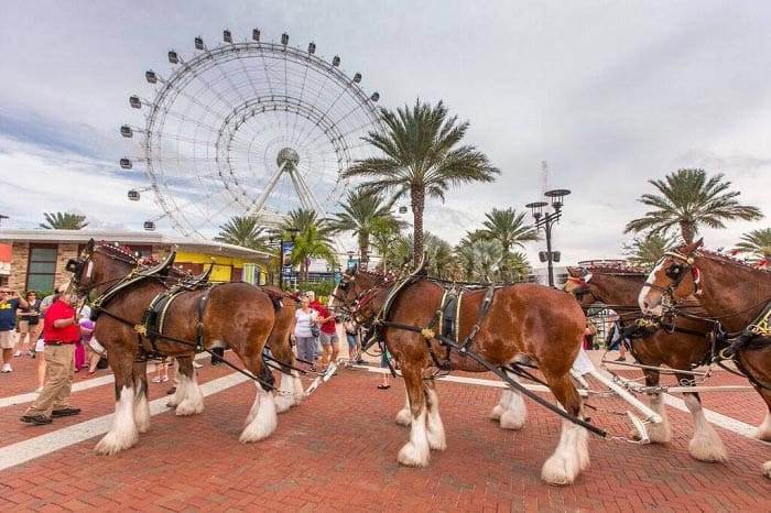 The world-famous and iconic Budweiser Clydesdales will be returning to Orlando’s ICON Park on Sunday, December 4th. From 11am to 1pm, guests can meet and take photos with the regal horses – all dressed up in their holiday best – as they pose in front of The Wheel.