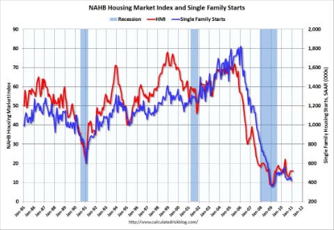 “While builders are starting to see more interest among potential home buyers, we are also dealing with a multitude of challenges, including competition from foreclosure properties and inaccurate appraisals of new homes, which are limiting our ability to sell,” said NAHB Chairman Bob Nielsen, a home builder from Reno, Nev. “On top of that, an extremely tight lending environment continues to make it almost impossible to obtain credit for viable new and existing projects, and most do not see that situation improving anytime soon.”