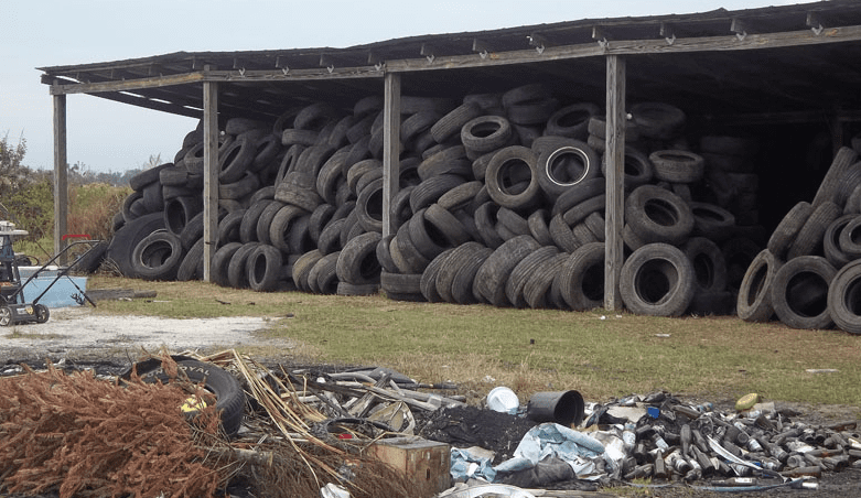 Investigators said, the waste tires were found within 200 feet of a natural body of water, and less than 500 feet from a potable well. Deputies also found evidence that the tires were being illegally burned on the property.