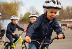The Kindergarten PE Program is designed for children of all abilities and hopes to instill healthy habits at a young age. “One of the best ways to get kids active is to get them excited about bicycles,” said All Kids Bike board member Ryan McFarland, “It’s a skill that is going to serve them in life.”