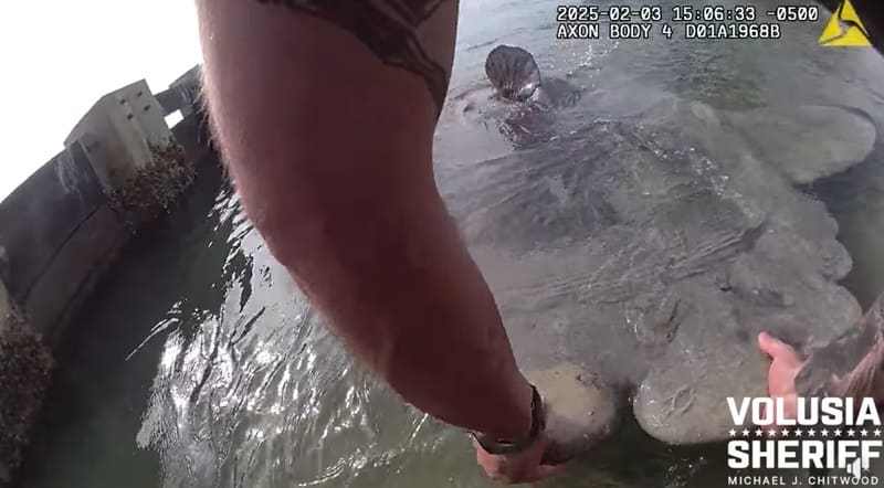 In a video posted by the Volusia County Sheriff’s office, Deputy Urquhart showed how to free a Mola Mola (ocean sunfish) from a stuck position.