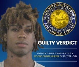 A Sumter County jury recently delivered a verdict of guilty against 26-year-old Bacarri Justice Austell of Wildwood, for Second-Degree Murder with a firearm, for the murder of a 16-year-old.