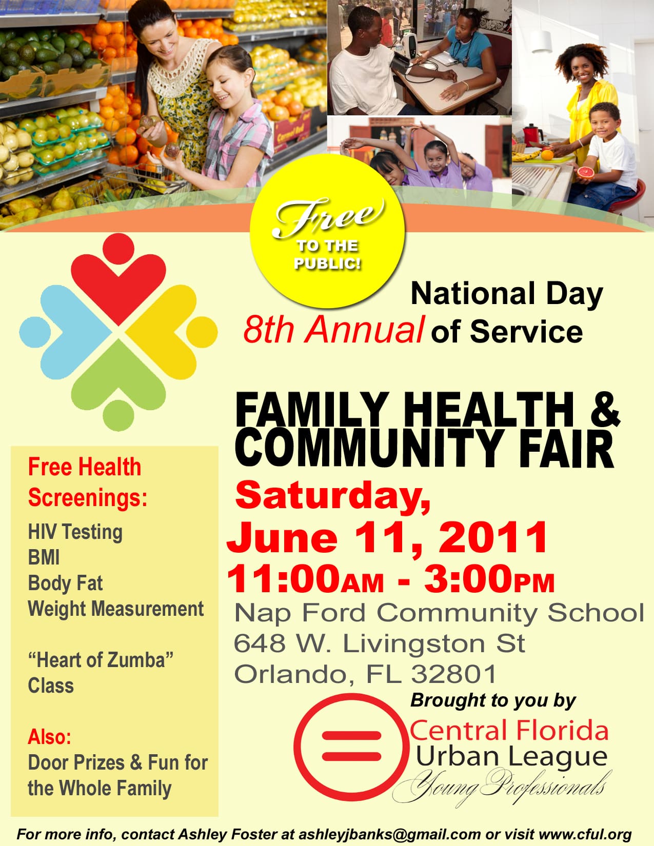 The Central Florida Urban League Young Professionals (CFULYP) invites families, churches, and schools to attend the Family Health and Community Festival at Nap Ford Community School, 648 West Livingston St. Orlando, FL 32801 on Saturday June 11, 2011 from 11:00am-3:00pm.