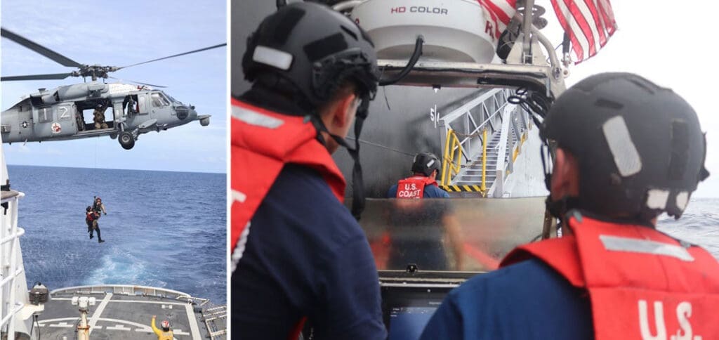 Vigilant’s crew coordinated with naval and law enforcement partners to transfer personnel and provisions to the tanker. A law enforcement team from Vigilant boarded the vessel to provide security during the 600-nautical-mile transit to the United States.