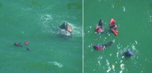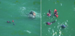 One of the boaters managed to grab a handheld radio to call for help on Channel 16 before the boat capsized.