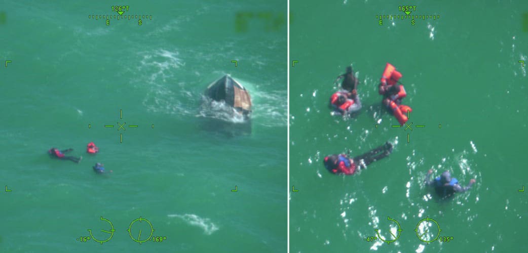 “We’re proud of our crews and our Navy partners for helping save four lives after their vessel capsized,” said Petty Officer 3rd Class Tabitha Pearigen, Coast Guard Sector Key West watchstander. “This is what we do. We want to save lives; we train to save lives.