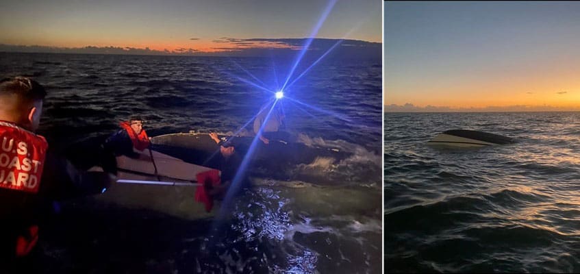 The Coast Guard recently rescued three people from a capsized vessel off Marathon in South Florida.