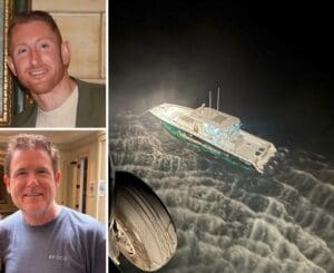 A Coast Guard Air Station Clearwater helicopter crew found the vessel adrift, still in gear, roughly 70 miles west of Fort Myers. A rescue swimmer was lowered, stopped the engines, and anchored the vessel for safety. Later that day, the boat was brought back to Station Fort Myers Beach for further investigation.