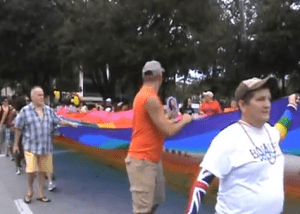 Participants in the parade were the usual suspects, however, there were some clear changes made. In video 1 The Out and Proud Veterans drum and bugle corps led off the parade followed by Darden Restaurants, a major employer in the area. Wells Fargo Bank leads off video 2 followed by Macy’s, SunTrust Bank, and Watermark Media. Disney leads off video 3 with a delay caused by one of those magnificent stallions doing what they do when you don’t want them to. Fear not! Disney has handled this before and a young man with a shovel and a trash cart follows those horses ready to clean up at a moment’s notice. What was unique about these corporate paraders is that their executives were in the parade marching with the working crews all in solidarity. It looks as though Don Reid Ford supplied the lion’s share of parade vehicles. The interest groups kept on coming, many of them throwing souvenirs, candy and beads at the crowds. Democratic political candidates abounded with nary a Republican in sight. Alan Grayson led the charge, followed by Linda Stewart (HD 47), Sean Ashby (HD50), Rick Singh (County Property Appraiser), Karen Castor Dentel (HD 30), Joe Saunders (HD49) and a few others who got lost in the crowd, notably Chris Pennington (SD13) and Randy Ross (Write in for something or other). Bringing up the rear in this video is Parade Grand Marshall, Debbie Gibson. Ms. Gibson will be performing later in the evening. Marching on video 4 are the night clubs and many support groups. More Corporate marchers, more clubs and support groups and the irrepressible Billy Manes are featured in video 5 which brings up the rear of the parade. Of course, it rained about 10 minutes after the parade ended. It was a perfect day to come out. Let’s look forward to the next one.
