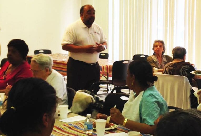 The more than 60 seniors who attended the event, not only got to meet Wallace and learn about his campaign priorities, but enjoyed a healthy lunch consisting of baked chicken, macaroni and cheese, rice, green beans and salad, among other selections.