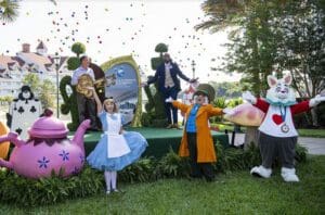 Just in time to conclude this special “tea party,” Alice, Mad Hatter and the White Rabbit joined the celebration and led the way to the magical key that revealed the first look at the new resort studios.