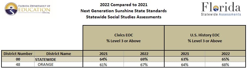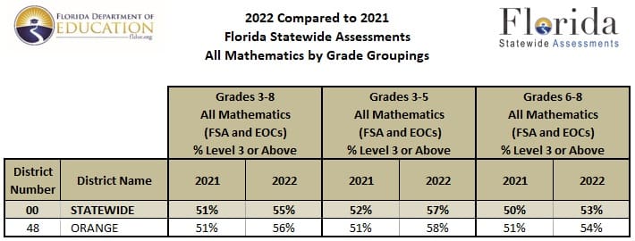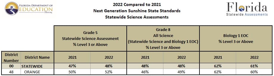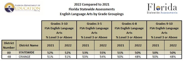 Orange County Public Schools has received its 2021-22 test scores from the Florida Department of Education for the 2021-22 Florida spring test administration.