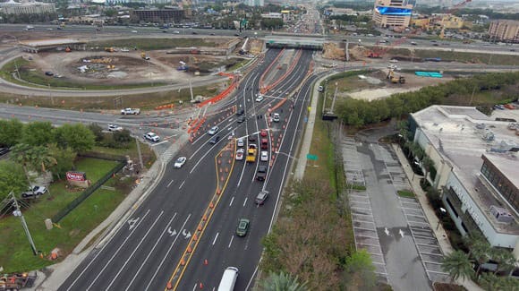 Central Florida’s first DDI opened at Interstate 95 (I-95) and Viera Boulevard in July 2019. A new DDI opened to motorists July 2022 at the interchange of I-4 and County Road 532 near ChampionsGate. An additional DDI for the I-4 corridor is planned at a new interchange being built at Daryl Carter Parkway – that project is underway and is expected to be complete by early 2026.