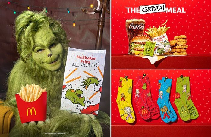 Check out Dr. Seuss’s The Grinch meal, with spirited socks, at McDonald’s for a limited time during the holidays.