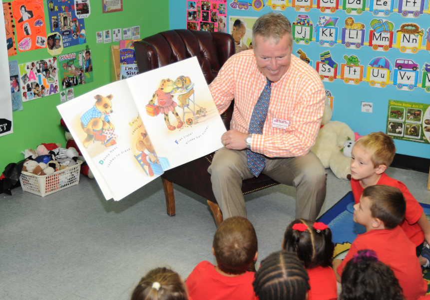 During the launch of the Preschool Ambassadors program, Dyer cheerfully read to a group of kindergarten students, “Miss Bindgarten gets Ready for Kindergarten” by Joseph Slate.
