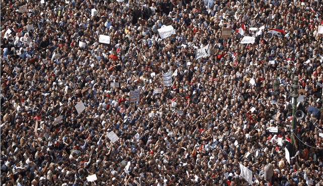 Several hundred thousand protesters massed in Cairo’s central Tahrir Square exploded into joy, waving Egyptian flags, and car horns and celebratory shots in the air were heard around the city of 18 million in joy after Vice President Omar Suleiman made the announcement on national TV just after nightfall.