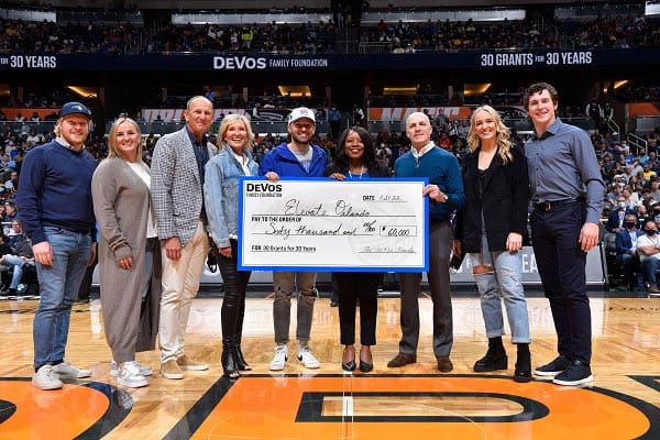 During the Orlando Magic game on Friday, January 21st, ELEVATE Orlando received a check for $60,000 from the DeVos Family Foundation. The nonprofit provides accredited classes, one-on-one mentoring, hands-on adventure activities, and college and career planning support for urban youth in Orange County Public Schools.
