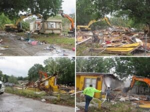 Demolition activity officially began Friday, March 22nd, with assistance from the Orange County Sheriff’s Office, and close to a half dozen mobile homes were demolished. Demolition crews plan to work at the site all day Saturday, March 23rd, and return on Monday, March 25th.