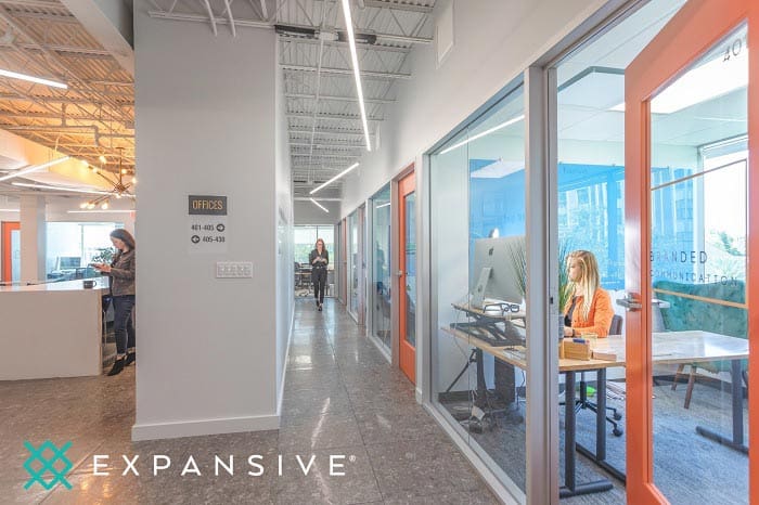 New clients will be offered two months free on a six-month term and can choose from a variety of flexible workspace options ranging from full-time private offices or dedicated desks to part-time Access Passes, to on-demand options like day offices, conference and training room rentals, or single-day coworking lounge passes. Dedicated Smartsuites are also available though not included in the offer. All workspace comes with state-of-the art fiber internet and amenities like the Expansive community lounge and kitchen, private phone booths, copy and printing services, conference rooms, bike storage, and access to Expansive’s nationwide network of centers across more than 30 cities.