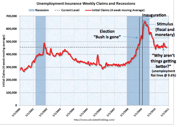 Andrew Sullivan from Calculated Risk posted a single chart showing why the economy was such a problem for Mr. Obama and the Dems in the mid-term elections, notwithstanding the fact that a Great Recession was avoided and some small improvements in the economy were realized.