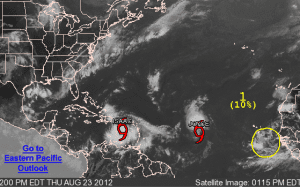 The National Hurricane Center said at 2:00 p.m. Thursday, Tropical Storm Isaac was located about 165 miles south of San Juan Puerto Rico.