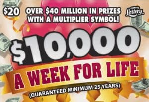 For $20, the $10,000 A Week For Life scratch-off game offers over $225 million in total cash prizes. Players have a chance to win one of four top prizes of $10,000 a week for life. There are three top prizes remaining according to the Florida Lottery.
