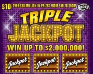 For $10, the Triple Jackpot scratch-off game offered more than $132 million in total cash prizes, including four top prizes of $2 million. There are zero top prizes remaining according to the Florida Lottery.