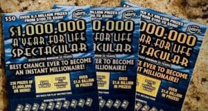 The $50 scratch-off game, $1,000,000 A YEAR FOR LIFE SPECTACULAR launched in February and features two top prizes of $1 million a year for life and 234 prizes of $1 million. This game also features more than $1.6 billion in cash prizes. The game’s overall odds of winning are 1-in-4.50.
