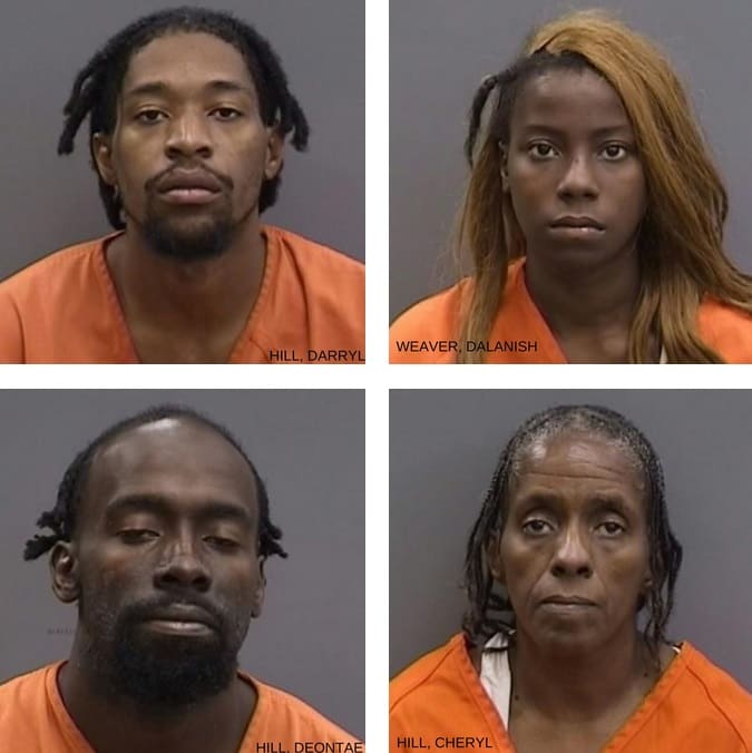 Continued surveillance at the residence in the early hours of October 17, 2024, led to the arrest of 24-year-old Dalanish Weaver and 32-year-old Deontae Hill, who were both observed discarding stolen items from the residence. Weaver is the girlfriend of Darryl Hill; Deontae Hill is the brother of Darryl. They were each arrested and charged with their involvement in the burglary.