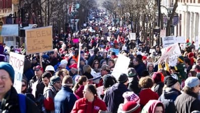 Walker’s latest “budget emergency” justification for attacking unions sounds strikingly similar to the excuse he used to fire the union guards back when he was county executive. The compressed amount of time he gave citizens to react to the bill’s provision curtailing union workers’ right to collectively bargain also fits the M.O. he used to back then try to privatize courthouse security. Here is Walker’s M.O.: grab the authority, take swift action, and don’t allow any time for negotiation or compromise.