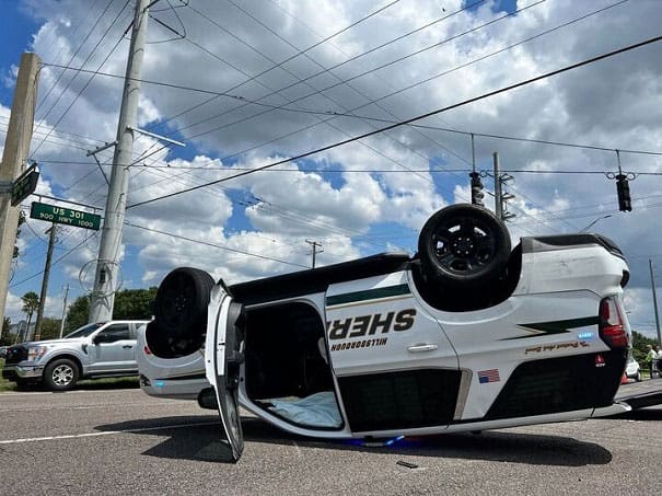 Hillsborough County Sheriff’s Office deputies emerged unharmed after a patrol car flipped in an accident.