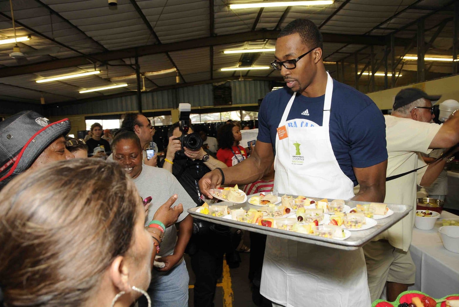Magic CEO Alex Martins, Magic Chairman Dan DeVos and NBA Commissioner David Stern passed out meals and drinks at the facility while Howard bussed tables and interacted with fans. Other NBA legends, such as David Robinson and Bob Lanier, worked at the facility painting murals and spreading mulch throughout playground areas.