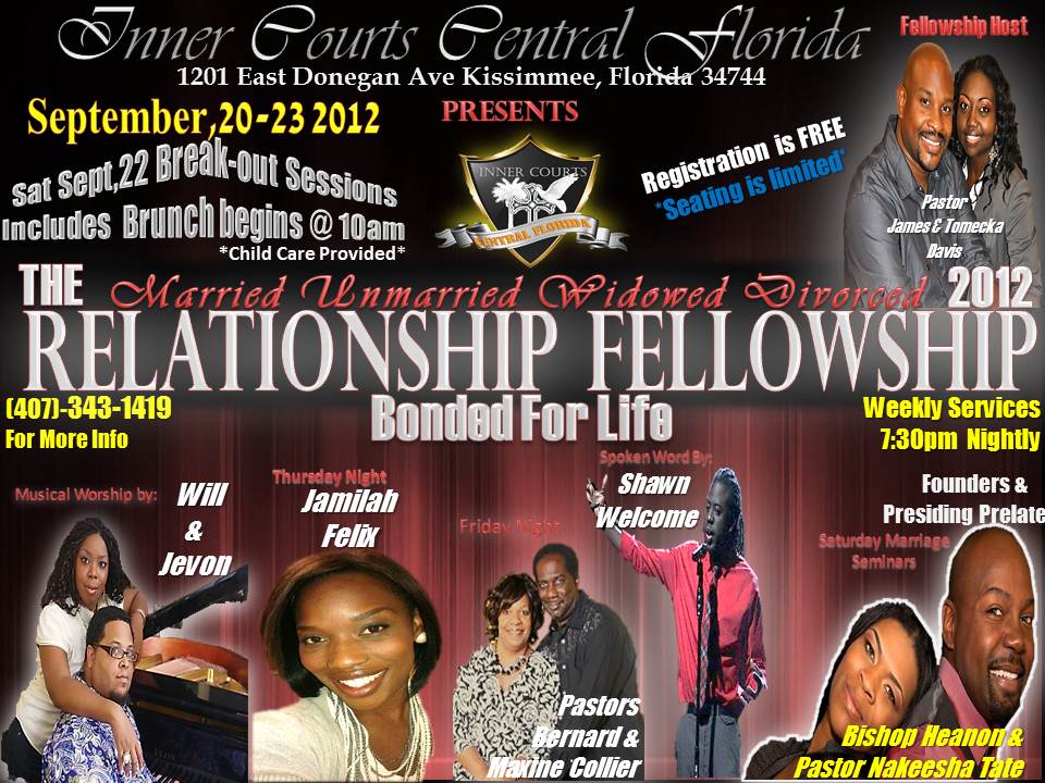 Kissimmee’s 2012 Relationship Fellowship that will be held at Inner Courts Central Florida, 1201 East Donegan Avenue Kissimmee, FL 34744, on September 20-22, 2012.