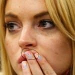 Holding her hands before her face and mouth quite often throughout the court proceedings, Lohan had painted on her finger, “F**K U”.