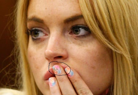 In spite of Lindsay Lohan’s tearful pleas before Judge Marsha Revel in a Los Angeles court room on Tuesday, she still managed to diss the judge and court with an obscene message on her left middle finger.