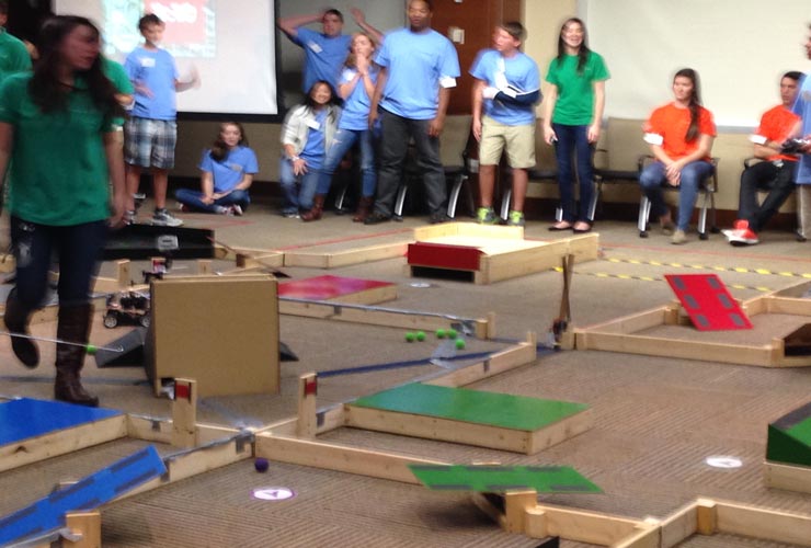 Last Thursday, during National Engineers Week, 24 teams of students from Apopka, Freedom High, Boone, Dr. Phillips, Oak Ridge, Ocoee, Edgewater, Lake Highland Prep, Osceola and Olympia, put their robots to the test to complete a set of required tasks that included, climbing ramps and quickly collecting and storing balls.