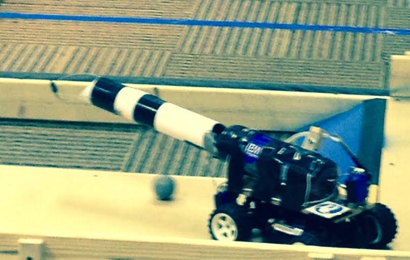 He says, participating teams are provided with the same platform, an RC car, “but students have to build on this and design all the mechanisms to bring a ball down off a string, as well as pick up artifacts off the ground and store them.”