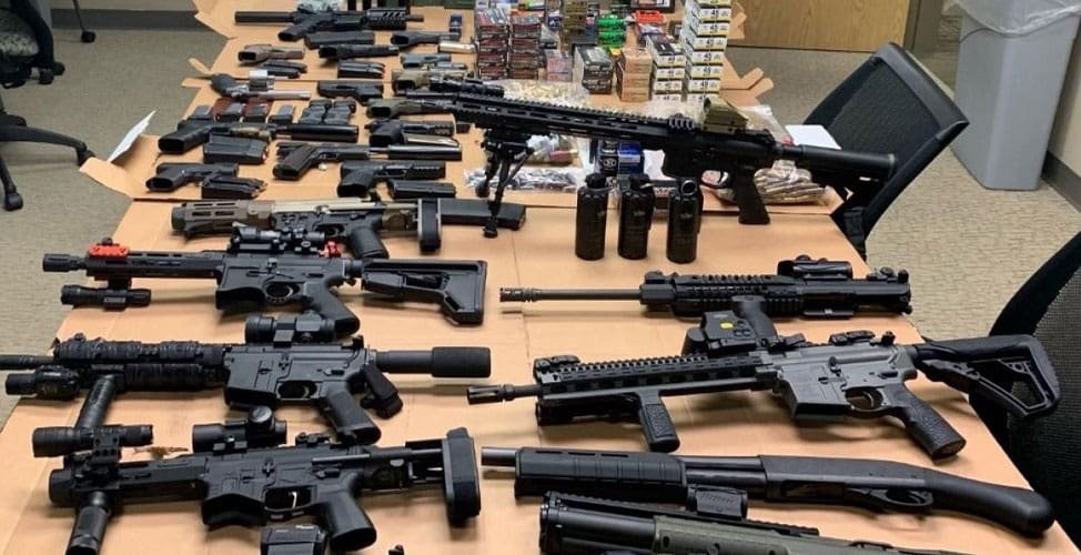 A search warrant executed on Carlos Alberto Roman’s home last year yielded 19 firearms, 6 silencers, 3 flash-bang grenades, and thousands of rounds of ammunition, depicted here along with three firearms seized from Cadiz’s home.