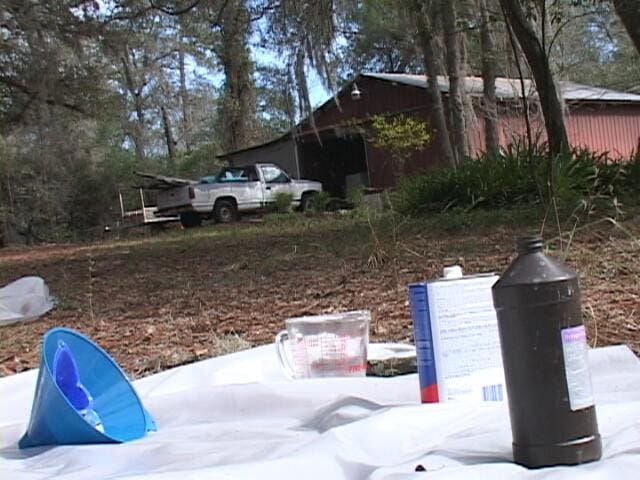 Authorities were alerted to a small, active meth lab in the vicinity of East Avenue and Night Owl Court in DeLeon Springs, after a resident called to report a suspicious person hanging out on a rural dirt road. Investigating officers, responding to the location, discovered a large barn-like shed with chemicals and equipment, where they found Jett and Sanchez.